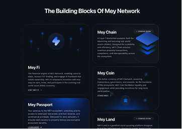 Mey is building the next-generation ecosystem for RWA (Real World Assets) tokenization, transforming how people access and invest in real estate and beyond. Their platform enables tokenized property offerings, fractional ownership, and a fully integrated ecosystem with Mey Chain, Mey Coin, and Mey Passport.