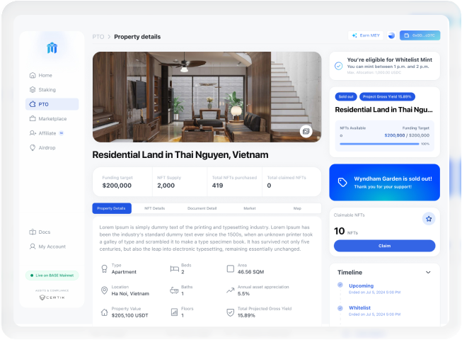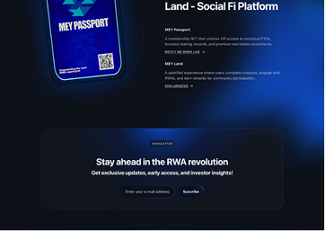 Mey is building the next-generation ecosystem for RWA (Real World Assets) tokenization, transforming how people access and invest in real estate and beyond. Their platform enables tokenized property offerings, fractional ownership, and a fully integrated ecosystem with Mey Chain, Mey Coin, and Mey Passport.