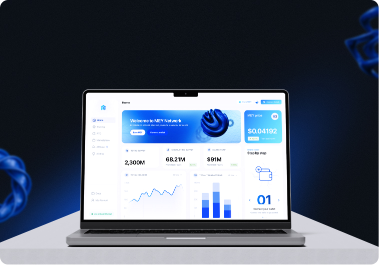 The Mey Network redesign transformed a complex RWA tokenization platform into a clear, trustworthy digital experience. By simplifying the communication of their multi-product ecosystem and streamlining investor journeys, we positioned Mey as a credible leader in the emerging tokenized real estate market. Our deliverables included a complete website redesign, investor portal interface, ecosystem visualization, and a scalable design system ready for future product expansion.
