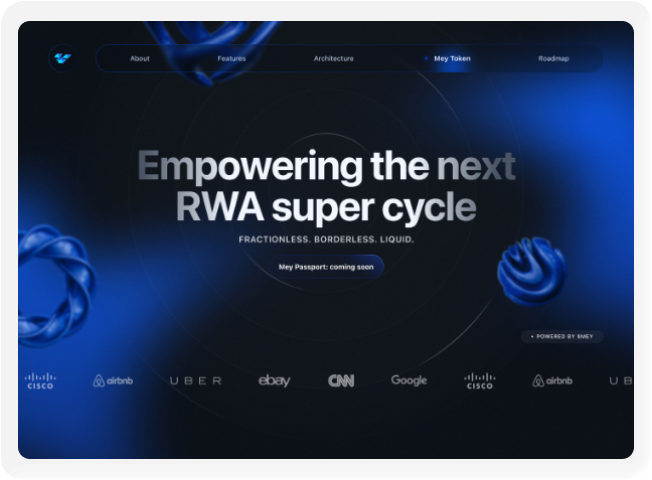 Our scope was to redesign Mey's digital presence, from the marketing website to the investor portal, creating a trustworthy and modern experience that positions Mey as a leader in RWA tokenization.